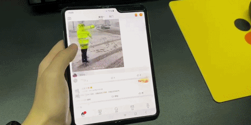 三星Galaxy Fold采用的是内折的折叠方案,当屏幕合上的时候会与曾经的翻盖手机一样会发出闷闷的“peng”的一个响声,这点是小山觉得有意思的一个小彩蛋。